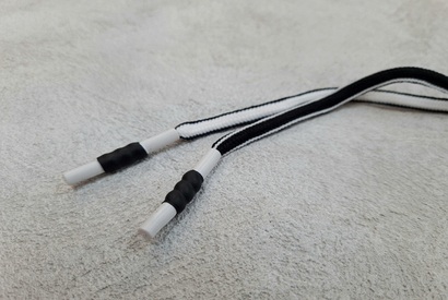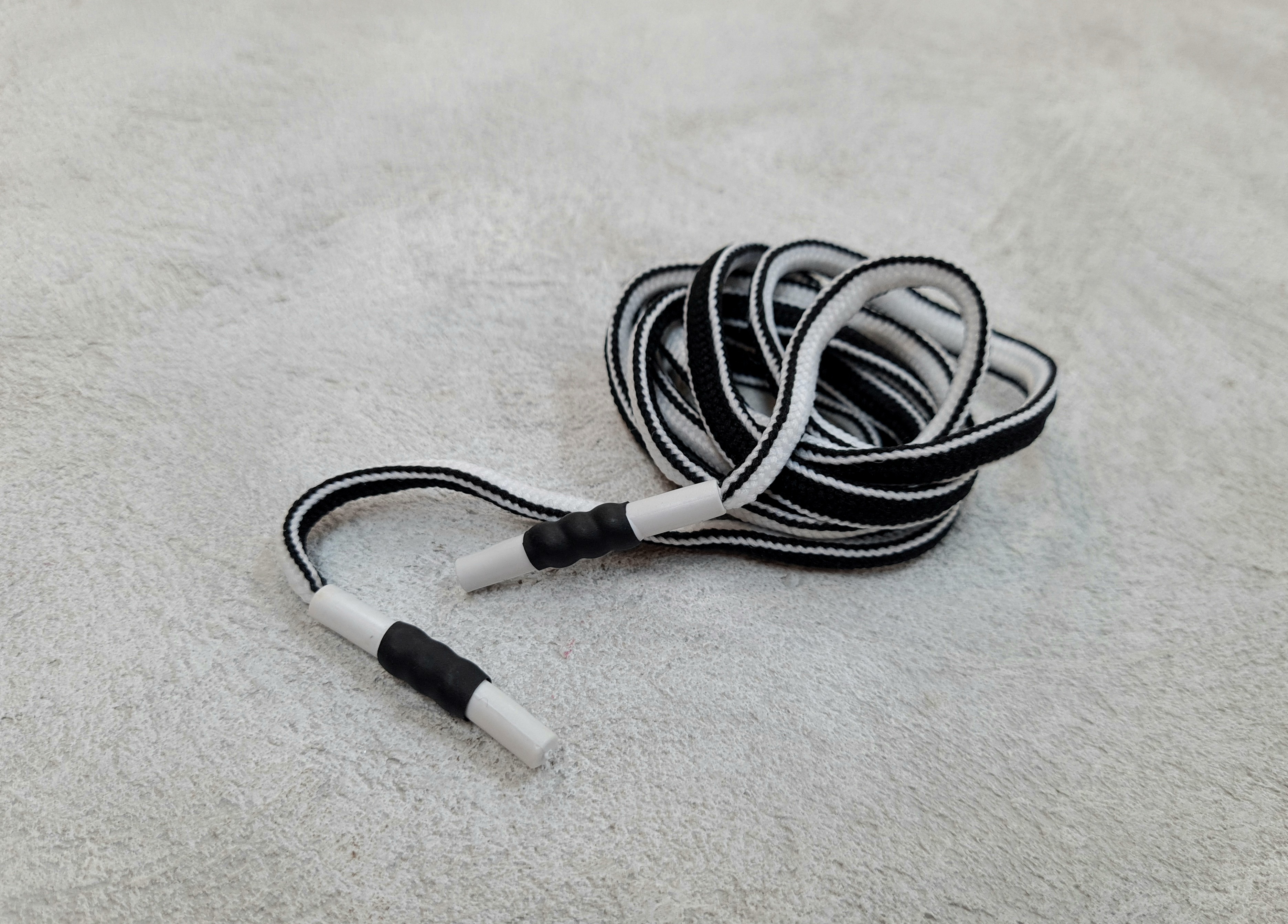 Шнурок круглый(1 штука) 08мм * 130 см черно-белые , пластиковый наконечник