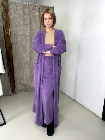 Трикотаж с пушистым ворсом темный тауп Арт.844917